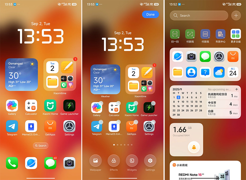 Launcher và thư viện ảnh mới của HyperOS 3 áp dụng hiệu ứng kính lỏng, rất giống với hình nền trong suốt tinh tế của Apple. Điều này mang lại cho giao diện vẻ ngoài cao cấp, mặc dù nó cảm thấy rất quen thuộc với người dùng iOS.