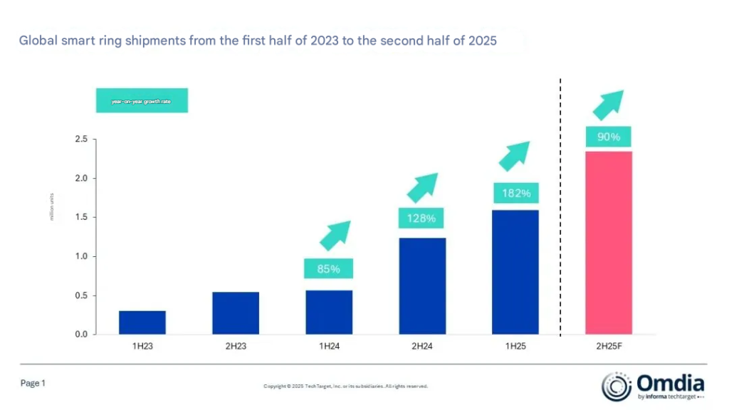 Năm 2023, doanh số nhẫn thông minh đạt 850.000 chiếc, nhưng sau đó tăng mạnh lên 1,8 triệu chiếc vào năm 2024. Chỉ riêng trong nửa đầu năm 2025, doanh số đã đạt 1,6 triệu chiếc, với ước tính cả năm sẽ đạt hơn 4 triệu chiếc.