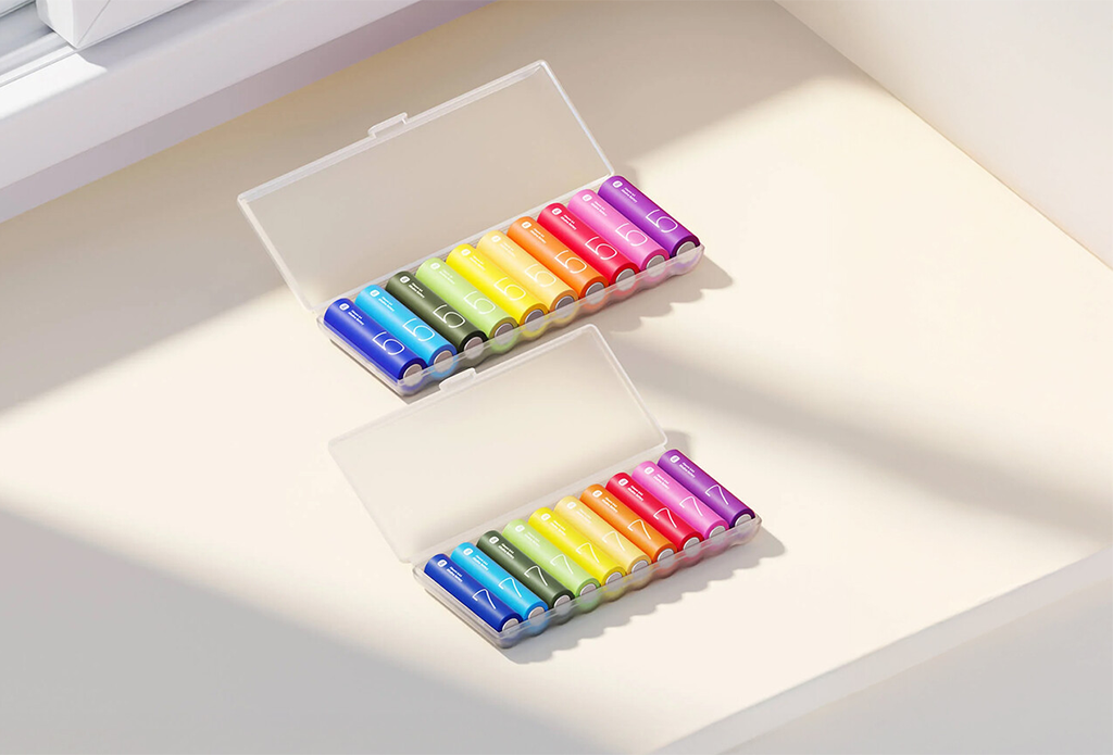 Nhưng thiết kế nhiều màu sắc này không chỉ để trang trí, nó thực sự hữu ích trong cuộc sống hàng ngày. Bởi vì mỗi viên pin có một màu khác nhau, nên việc phân biệt giữa pin mới và pin đã qua sử dụng trở nên dễ dàng hơn nhiều, tránh được tình trạng nhầm lẫn giữa pin cũ và pin mới. Thêm vào đó, chúng được đựng trong hộp trong suốt, dễ nhìn thấy khi để trong ngăn kéo.