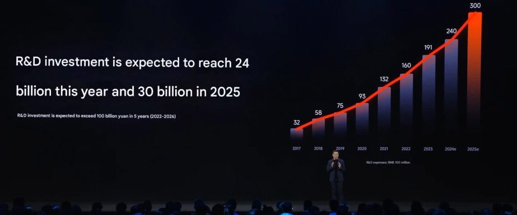 Trong năm 2024, Xiaomi đã đầu tư hơn 24 tỷ nhân dân tệ (3,4 tỷ USD) vào R&D và khoản đầu tư vào R&D của công ty dự kiến sẽ vượt quá 200 tỷ nhân dân tệ (28,2 tỷ USD) trong 5 năm tới.