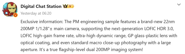 Máy sở hữu cảm biến chính 200MP (1/1.28 inch) tích hợp công nghệ LOFIC HDR 3.0 và một camera tele 200MP hỗ trợ chụp macro, giúp tối ưu dải tương phản và chụp thiếu sáng xuất sắc.