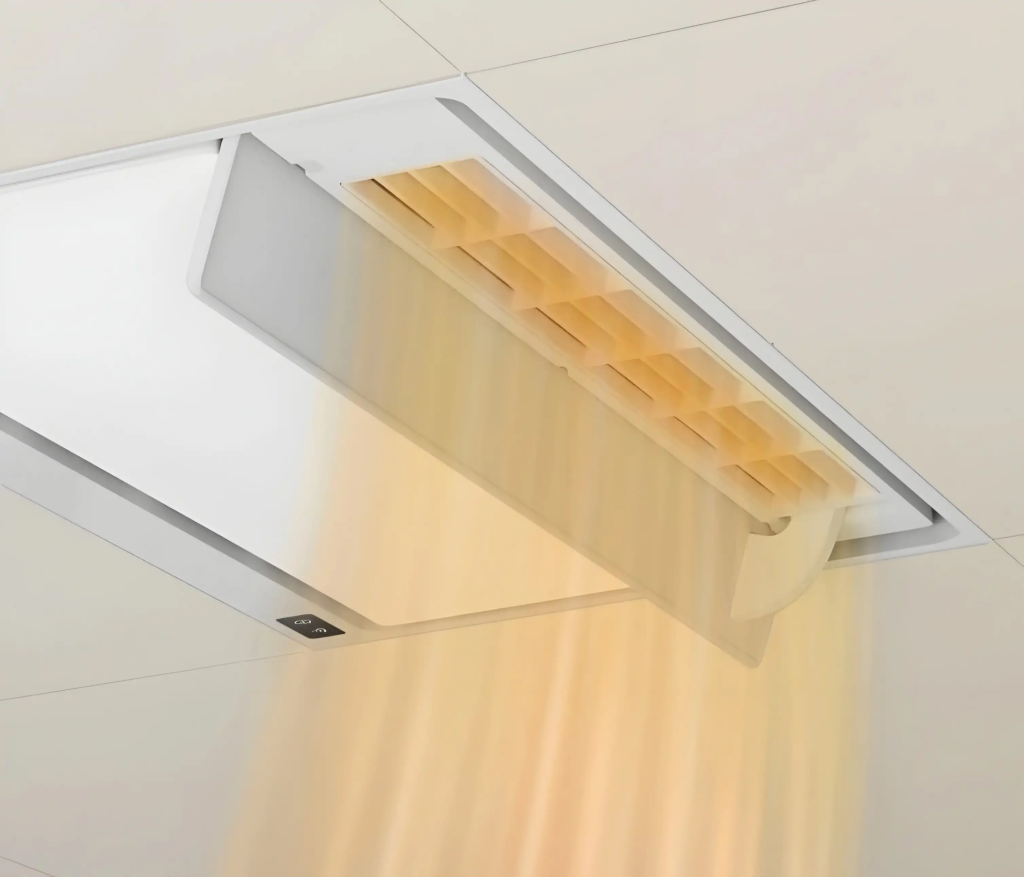 Mô-đun sưởi ấm bằng gốm 2800W đảm bảo phòng tắm có thể ấm lên nhanh chóng, cải thiện sự thoải mái, đặc biệt là trong điều kiện lạnh. Máy sưởi này được trang bị hệ thống quạt kép 160mm sử dụng động cơ biến tần DC kép, cho phép luồng gió mạnh mẽ và ổn định. Máy hỗ trợ hút gió 360 độ, góc thoát khí có thể điều chỉnh từ 60° đến 110° và khoảng cách thổi gió ấm lên đến 3 mét.