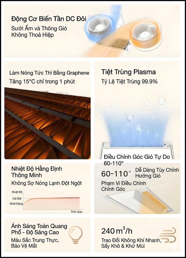 Những tính năng này giúp phân phối không khí ấm đều khắp không gian đồng thời cải thiện hiệu quả thông gió.