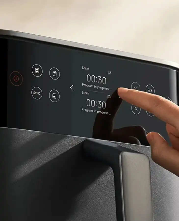 Theo Xiaomi, nồi chiên không dầu hai tầng này đã được ra mắt tại một số quốc gia châu Âu. Sản phẩm có thiết kế nhỏ gọn nhưng có dung tích lớn 12 lít nhờ thiết kế hai tầng xếp chồng lên nhau. Mỗi tầng (mỗi khay) lại có 2 lớp cho phép bạn chế biến bốn món ăn cùng lúc. Với công suất tối đa 2.800W, không khí nóng được lưu thông khắp nồi để nấu chín đều. Người dùng có thể cài đặt nhiệt độ từ 40 đến 230°C. Ngoài ra, bạn có thể chọn các cài đặt khác nhau cho hai khay hoặc đồng bộ hóa chúng bằng một nút chuyên dụng.