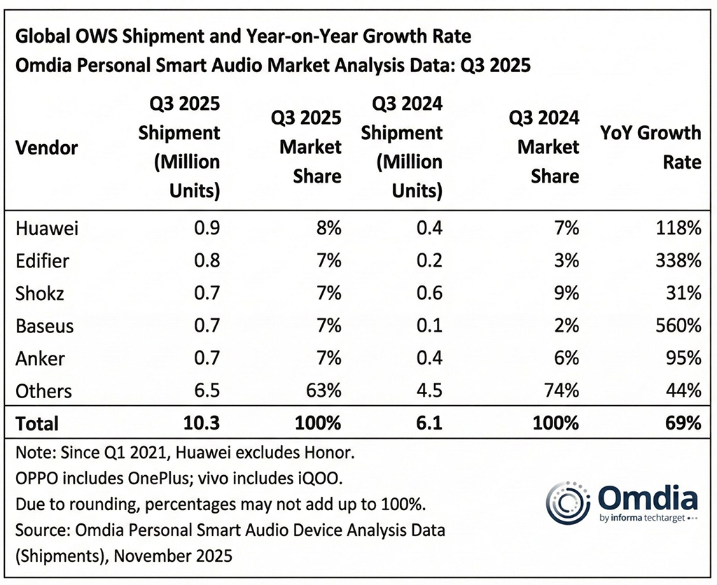 Hệ thống tai nghe không dây dạng mở (OWS) đã đạt được hiệu suất vượt trội, thúc đẩy sự hiện diện trên thị trường trong phân khúc này. Nhiều thương hiệu được công nhận là dẫn đầu thị trường, theo nhận định của công ty nghiên cứu Omdia.